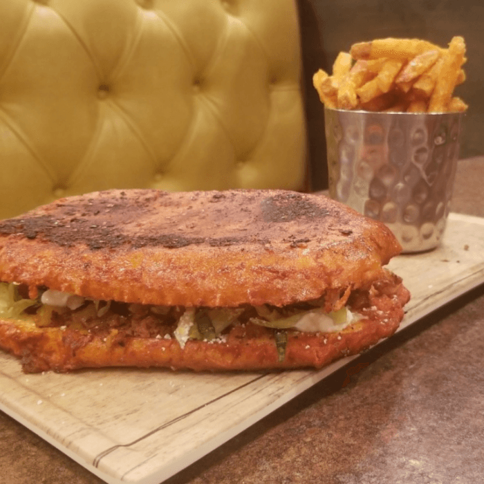 Mexican bread spread with refried beans, mayo and slices of avocado, stuffed with pickle jalapenos, slices of tomato, onions, grilled cheese and your choice of meat.
